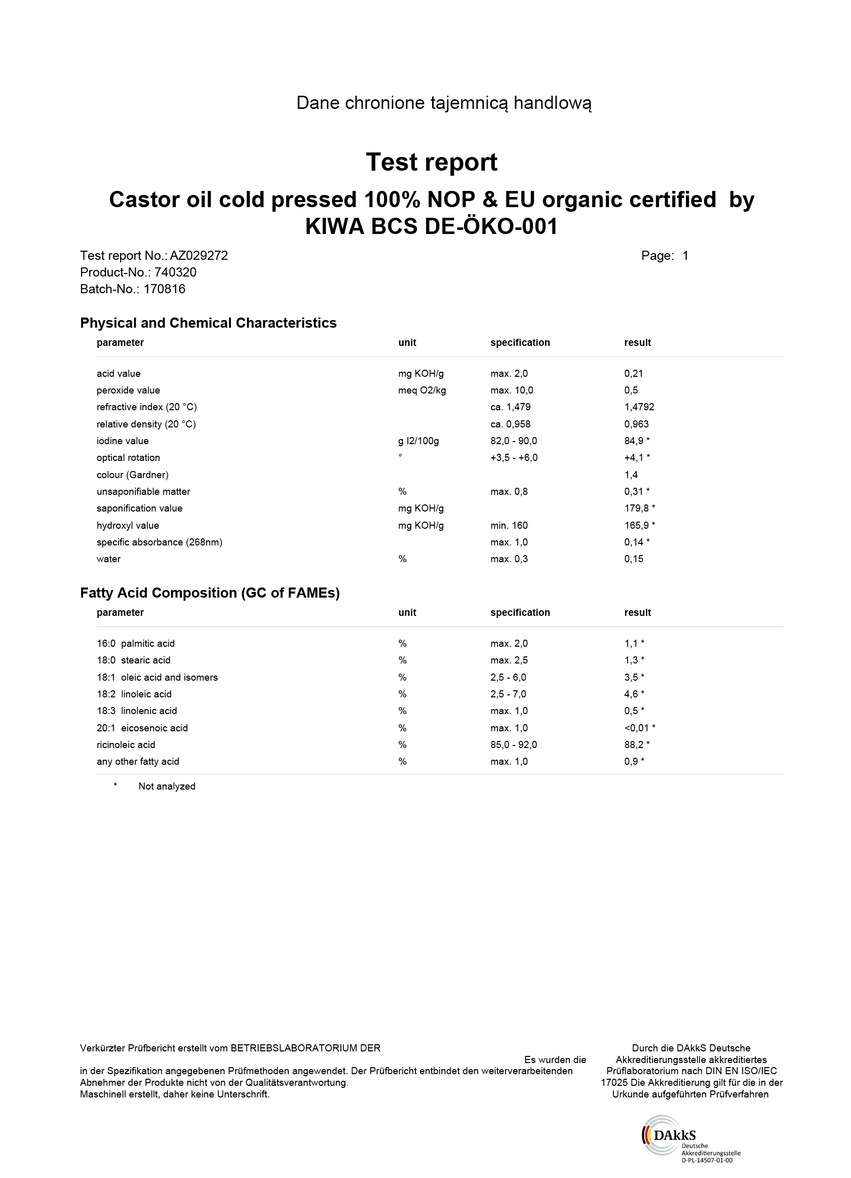 Produkt jakości organicznej certyfikowany przez niemiecki urząd akredytowany na terenie EU co daje im ważność na terenie całego EU.
